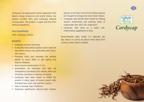 product contains 100% pure Cordyceps sinensis • Cordyceps may benefit heart health by helping
